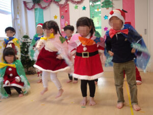 クリスマス会が始まり、各クラスの出し物(踊り)をみんな上手に踊ってくれました♡